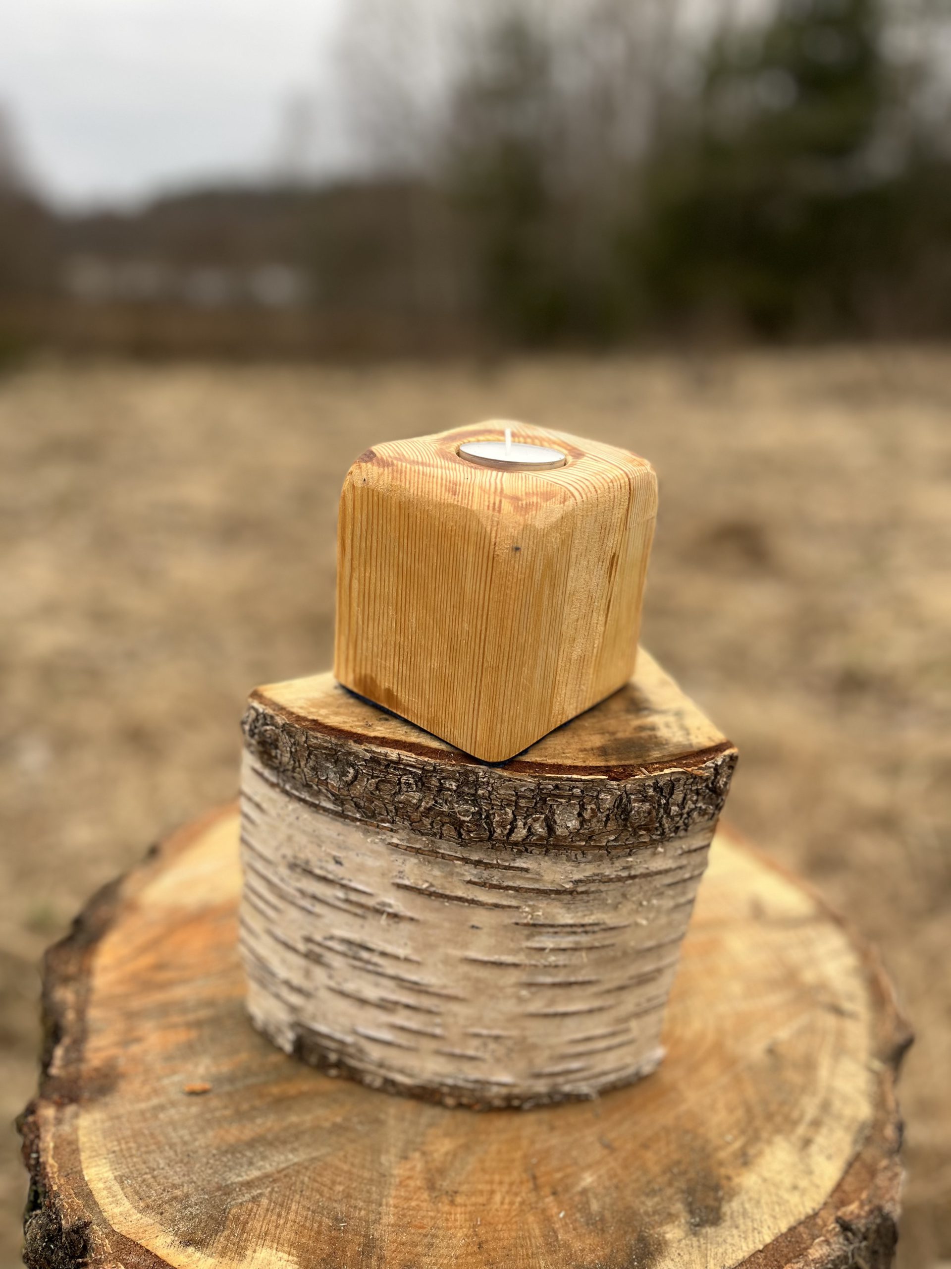 Handcrafted Candleholder – KUUSK/MÄND Made from high-quality Kuusk (Spruce) and Mänd (Pine), this handcrafted candleholder brings a touch of nature into your home. With its unique wood grain and smooth, eco-friendly finish, it holds a tealight to create a warm, inviting glow. Perfect for any room, this charming piece is both functional and stylish.
